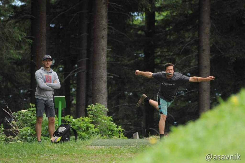 Die erste Runde konnte Matthias Polsterer mit einer sensationelle +3 beenden. Damit spielte er die Runde unglaubliche 126 Punkte über seinem Rating und stellte damit schon die Weichen für das restliche Turnier in seiner Division. David, welcher ebenfalls im Flight mit Matthias spielte konnte lange Zeit das PAR halten, ehe er auf den letzten 4 Bahnen ebenso viele Würfe auf Pluskonto übernehmen musste. Auch Simi und Alex Horvath konnte mit einer plus 2 bzw. sogar einer -1 guten Runden absolvieren. Andi Kanelluti konnte ebenfalls eine solide Runde hinlegen. Aleksi und Andi Trondl haderten ein bisschen mit dem Kurs konnten aber beide in Runde 2 wieder Boden gut machen. Conny spielte dafür ebenfalls eine gute erste Runde. Barbara konnte dafür erste Erfahrungen auf einem alpinen Parcours sammeln.